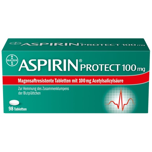 Aspirin protect 100 mg hemmt u. a. das Zusammenhaften und Verklumpen von Blutplättchen (Thrombozyten) und beugt dadurch der Entstehung von Blutgerinnseln (Thromben) vor (Thrombozytenaggregationshemmung).
