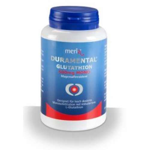 DURAMENTAL® GLUTATHION 500mg MONO, reduziert, magensaftresistent ist die ideale Ergänzung zu unserem Basisprodukt DURAMENTAL® GLUTATHION 300mg PLUS, das in seiner einzigartigen Wirkstoffkombination Vitamine und Spurenelemete zur Verbesserung der Bioverfügbarkeit enthält. Bei einer therapeutisch notwendigen Hochdosierung wird durch die zusätzliche Einnahme dieses Monoprodukts eine Kumulierung bzw. Anhäufung der im Basisprodukt enthaltenen Vitamine und Spurenelemente vermieden.