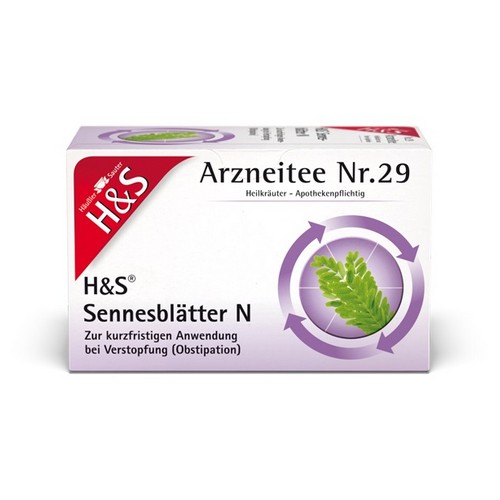 H&S Sennesblätter N. Anwendungsgebiete: Zur kurzfristigen Anwendung bei Verstopfung (Obstipation). Zu Risiken und Nebenwirkungen lesen Sie die Packungsbeilage oder fragen Sie Ihren Arzt oder Apotheker. H&S Tee-Gesellschaft mbH & Co. · Heidachstr. 62 · D-88079 Kressbronn/Bodensee.