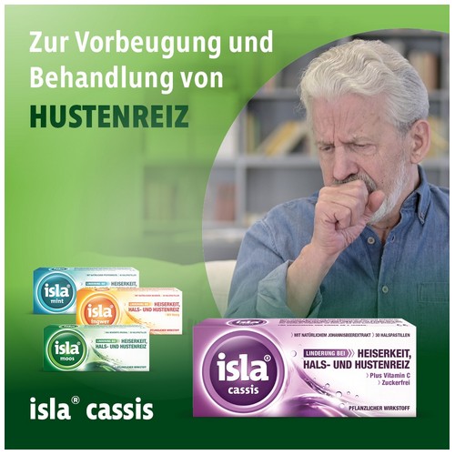 Die Inhaltsstoffe von isla ® cassis legen sich wie Balsam über die Schleimhaut in Hals und Rachen. So wird die gereizte Schleim haut vor weiteren Angriffen geschützt und kann sich durch die wohltuende Wirkung schneller erholen, insbesondere bei Beschwerden im Hals durch,