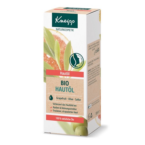 Verbessert das Hautbild bei: Narben, Dehnungsstreifen (z.B. Schwangerschaftsstreifen), reifer Haut, trockener, strapazierter Haut Das Kneipp® Bio Hautöl ist eine intensiv regenerierende Spezialpfl ege bei Narben und Dehnungsstreifen. Durch die wertvollen Öle wird das Hautbild verbessert und reife sowie trockene und strapazierte Haut reichhaltig versorgt. Wertvolles Grapefruitöl regt den Hautstoffwechsel an und unterstützt damit die natürliche Regeneration und Erneuerung der Haut. Safloröl und Olivenöl aus biologischem Anbau sind reich an ungesättigten Fettsäuren. Sie schützen die Haut vor Feuchtigkeitsverlust und versorgen sie mit essentiellen Nährstoffen, die ihr eine seidige Glätte verleihen.