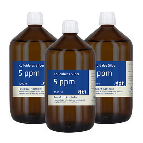 3 x 1000 ml "Kolloidales Silber - Pestalozzi Apotheke" in lichthemmender Apothekerbraunglasflasche