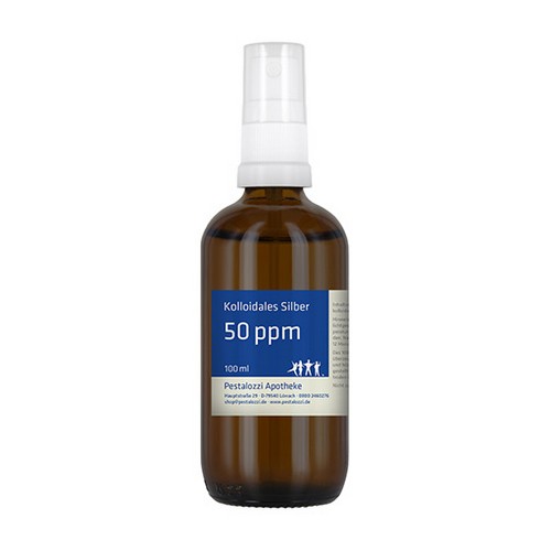 Das kolloidale Silber 50 ppm wird mit hochreinem destillierten Wasser unter qualifizierten Laborbedingungen frisch hergestellt und in einer dunklen Glasflasche geliefert. Die Herstellung erfolgt in der Apotheke unter überwachten Laborbedingungen. Das kolloidale Silber wird auf elektrolytischem Wege mit Hilfe eines entsprechenden Generators hergestellt. Dabei werden aus 99,99% reinem Silber kleinste Partikel gebildet und in destilliertem Wasser verteilt. Wir arbeiten dabei ohne Einsatz von Zusatzstoffen. Bitte beachten Sie: Kolloidales Silber ist kein Arzneimittel und daher auch ohne Angabe einer Indikation. Aus rechtlichen Gründen bieten wir daher das kolloidale Silber nur für technische Zwecke an. Nicht zum Einnehmen.