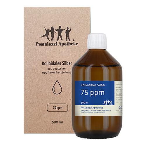 Das kolloidale Silber 75 ppm wird mit hochreinem destillierten Wasser unter qualifizierten Laborbedingungen frisch hergestellt und in einer dunklen Glasflasche geliefert. Die Herstellung erfolgt in der Apotheke unter überwachten Laborbedingungen. Das kolloidale Silber wird auf elektrolytischem Wege mit Hilfe eines entsprechenden Generators hergestellt. Dabei werden aus 99,99% reinem Silber kleinste Partikel gebildet und in destilliertem Wasser verteilt. Wir arbeiten dabei ohne Einsatz von Zusatzstoffen. Bitte beachten Sie: Kolloidales Silber ist kein Arzneimittel und daher auch ohne Angabe einer Indikation. Aus rechtlichen Gründen bieten wir daher das kolloidale Silber nur für technische Zwecke an. Nicht zum Einnehmen.