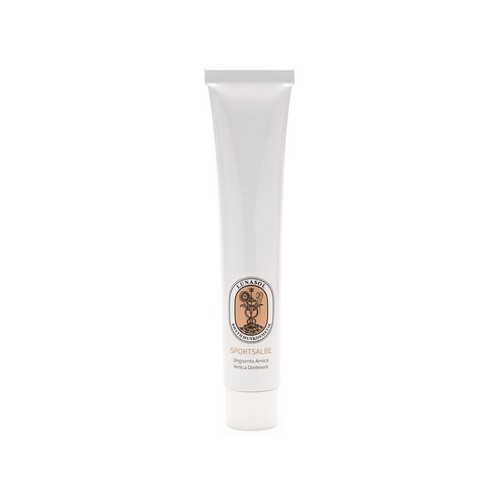 Die besonders reichhaltige Arnikasalbe durchwärmt die Haut mit ihrer Sonnenkraft und aktiviert ihren gesunden Stoffwechsel. Ihre hervorragenden Gleiteigenschaften prädestinieren sie zur Unterstützung einer therapiebegleitenden Massage, z. B. im Rahmen von Leistungssport, zur Vorbeugung von Verspannungen, Verkrampfungen und Muskelkater sowie bei Muskel- und Gelenkbeschwerden. Masseure und Sportler lieben die Sportsalbe. Ihr alchemistisches Geheimnis liegt in ihrem Arnikablüten-Auszug in Mandelöl, geschwefeltem Leinöl, geschwefeltem Terpentinöl, Dostenkrautöl, Eukalyptusöl, Fichtennadelöl, Latschenkiefernöl, Lavendelöl, Rosmarinöl und Salbeiöl. Die ätherischen Öle geben der Salbe einen intensiven, warmen und angenehmen Duft.