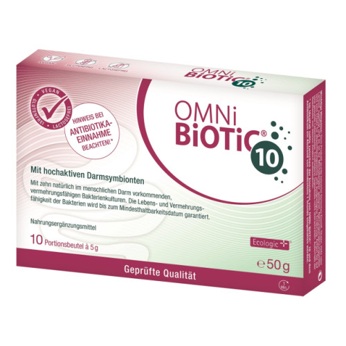OMNi-BiOTiC® 10 enthält pro Portion 5 Milliarden Darmbakterien aus 10 verschiedenen Stämmen, die natürlich im menschlichen Darm vorkommen. In wissenschaftlichen Studien wurde gezeigt, dass sich die in OMNi-BiOTiC® 10 enthaltenen Bakterien im Darm ansiedeln und vermehren können.