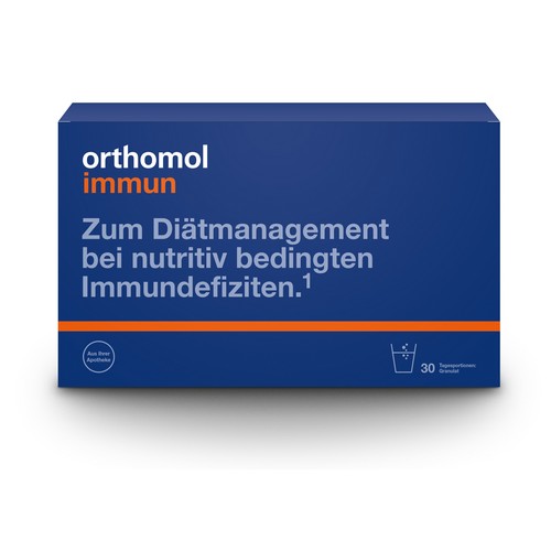 Das Original von Orthomol hat sich seit 30 Jahren in der ärztlichen Praxis bewährt. Orthomol Immun Granulat ist exklusiv in Apotheken erhältlich: Mit Orthomol Immun kaufen Sie ein zertifiziertes Lebensmittel für besondere medizinische Zwecke zum Diätmanagement von nutritiv bedingten Immundefiziten.