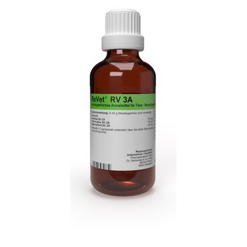 ReVet® RV 3A - oral - (Globuli) wird in etwas Wasser aufgelöst eingegeben. Die Globuli dürfen auch aufgelöst mit etwas Nahrung oder Tränke verabreicht werden. Die Häufigkeit und Dauer der Anwendung richtet sich in erster Linie nach den Grundsätzen der Homöopathie, wonach bei beginnender Besserung seltener dosiert wird und nach Erreichen des Normalzustandes zunächst keine weitere Anwendung erforderlich ist.