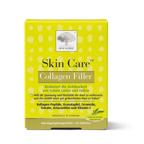 Der Skin Care™ Collagen Filler ist eine Hautpflege-Tablette, die die Haut mit Nährstoffen von Innen versorgt. Skin CareTM Collagen Filler basiert auf marinem Kollagen, so wie es auch natürlicherweise in der Haut vorkommt. Die Tabletten enthalten auch Granatapfel mit einem natürlichen Anteil an Ellagsäure, Tomate, Ceramiden und Astaxanthin. Skin CareTM Collagen Filler ist eine gute Ergänzung Ihrer täglichen Schönheitspflege.