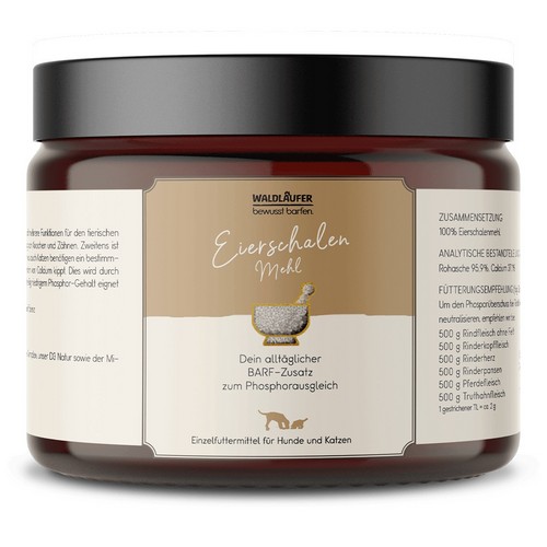 Das Eierschalenpulver bietet eine natürliche Kalziumquelle und eignet sich besonders gut für Vierbeiner, die keine Knochen und kein Knochenmehl bekommen, für allergische, nierenkranke oder ältere Tiere sowie für Hunde und Katzen mit erhöhtem Kalziumbedarf.
