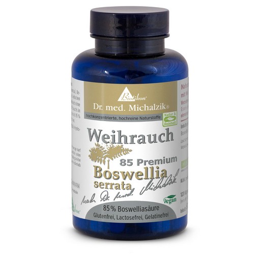 BS-85 nach Dr. med. Michalzik enthält 100% reinen indischen Weihrauch (Boswellia serrata) ohne jegliche Zusätze in der Kapselfüllung, aus Wildwuchs in unberührter Natur. Die wichtigsten aktiven Inhaltsstoffe Boswellia-Säuren liegen mit 85 % in einer außergewöhnlich hohen Konzentration vor.