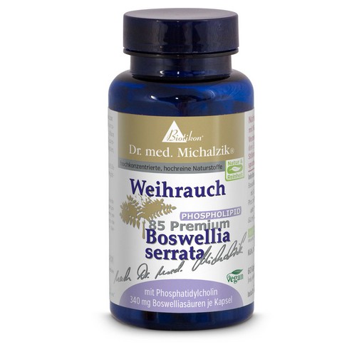 nach Dr. med. Michalzik enthält 400 mg hochwertigen Weihrauch-Extrakt mit 85 % Boswelliasäuren. Weihrauch ist fettlöslich, sodass es zum oder nach dem Essen eingenommen werden sollte.